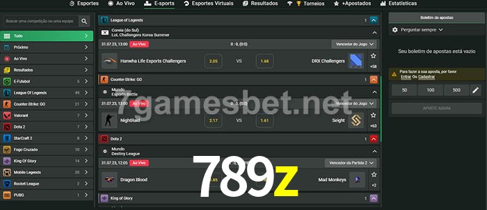O 789z oferece uma grande seleção de opções de apostas em e-sports com probabilidades competitivas